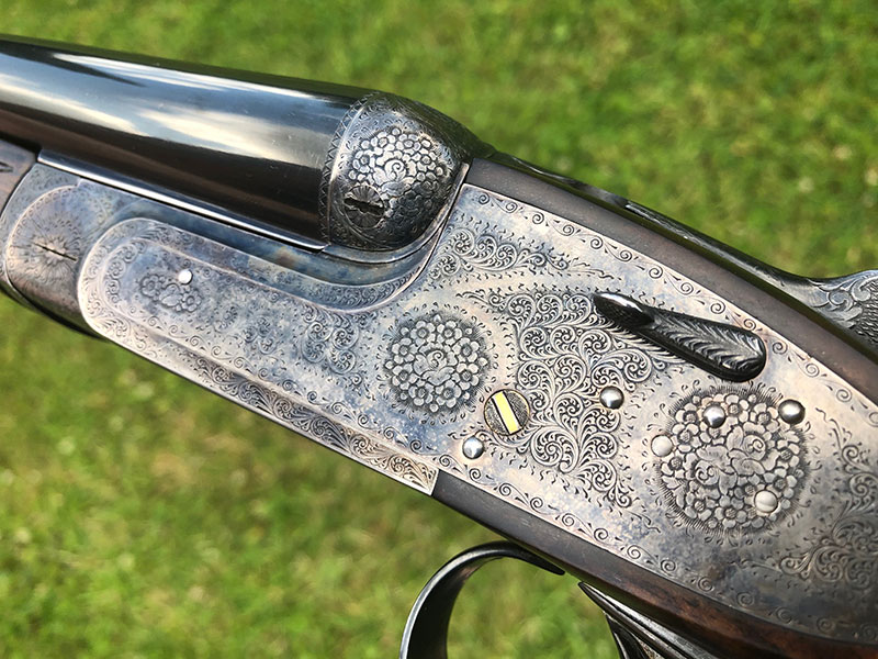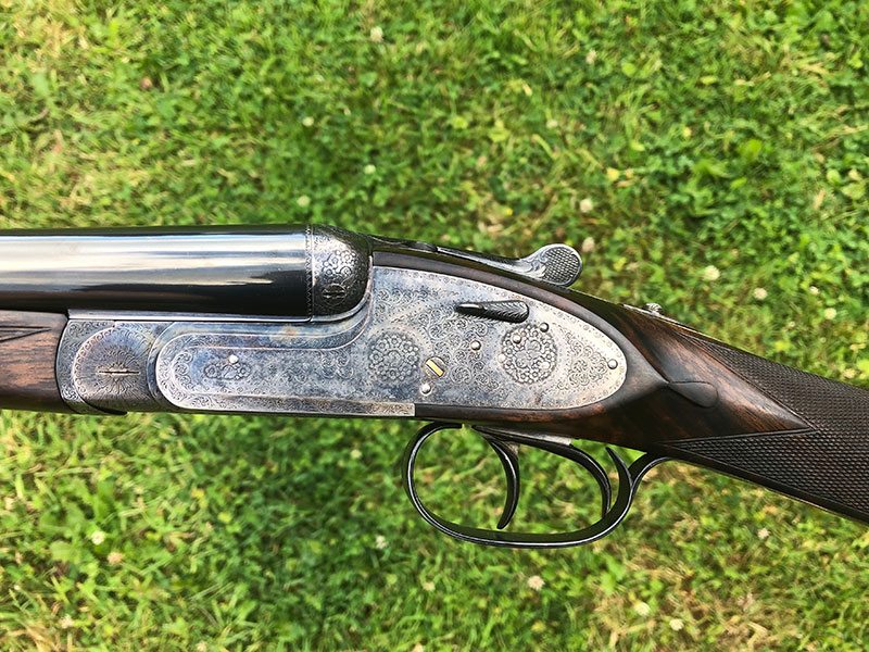 A very lightly used and well cared for 20-bore AYA No.1 SLE. Originally bought from William Powell, it is cased and showing very little use, has stunningly figured in the wood and perfect blacking, chequer etc. A new one is £18,000!