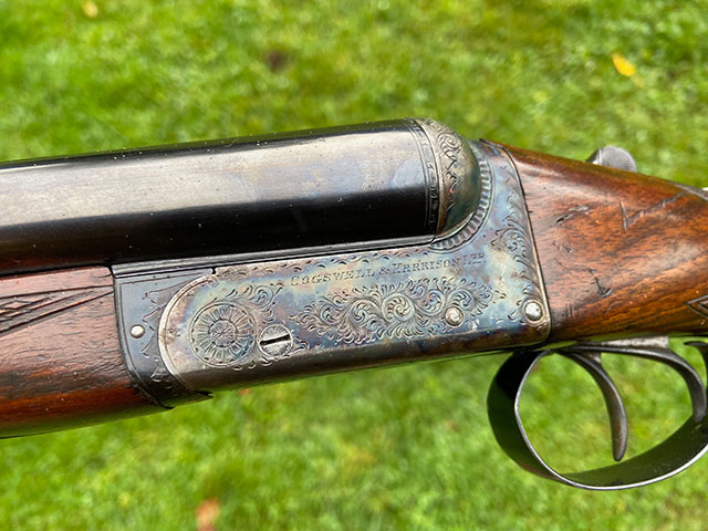 One owner from new in 1964. 'Markor' model by Cogswell & Harrison. almost 100% original case colours, nicely figured stock. Used for four or five driven days per year by the owner for the last 55 years. Excellent order throughout. A classic mid-weight game-gun with the benefit of 2 3/4" chambers.