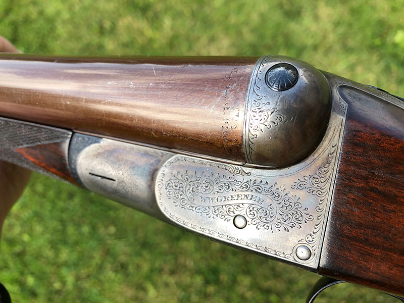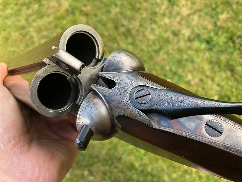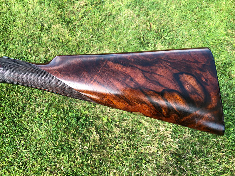 A really nice example of Greener's Facile Princeps action with the Treble Wedge Fast crossbolt. Nitro-reproofed Damascus barels with clean bores and great measurements. Unusually well-coloured and figured wood and about 35% original case colours. The qualith and mechanical excellence of a Greener Facile Princeps without the tricky ejector work. Top safety instead of the normal Greener side-safety. Greener charged an extra £1 for this!