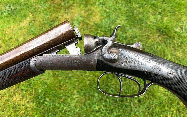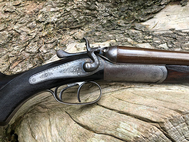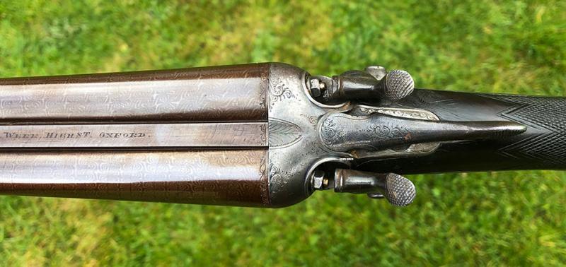 A nice quality back lock 28-bore hammer gun by F.E. Webb of Oxford. Rebounding back-locks with scroll engraving, 26" fine damascus barrels re-proofed for nitro. The gun has been stripped, cleaned, jointed and serviced, it is in excellent mechanical order and the barrels have been polished and best browned. Wood is well figured, in good condition and has never been re-finished, nor the chequer re-cut. Oil finish is worn, with sone age-appropriate scratches and dents but we can restore the woodwork if required.