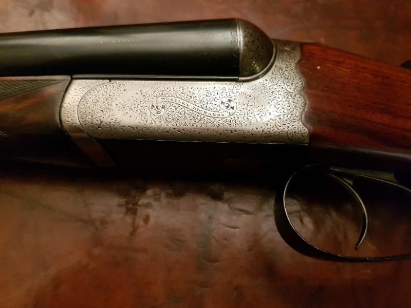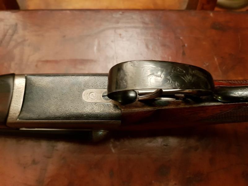Westley Richards 12-bore 'drop-lock' made in 1910 and re-barrelled and re-stocked by the maker. Excellent mechanically with a large gold oval in the stock. This is a vintage action restored to create a modern game gun.