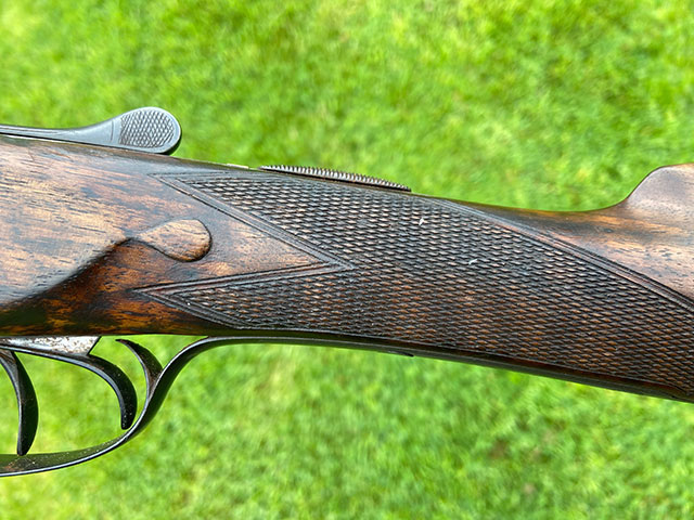 A plain 28-bore boxlock in good mechanical order. Treble-grip action, drop points, original flat-top chequer to hand & forend.