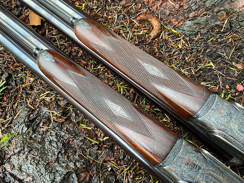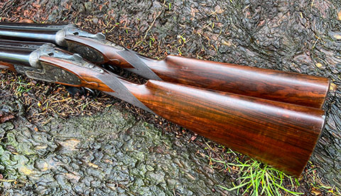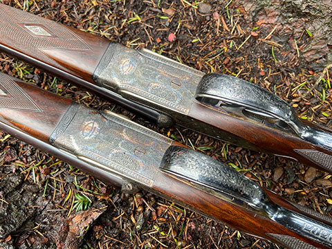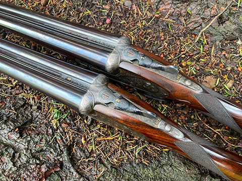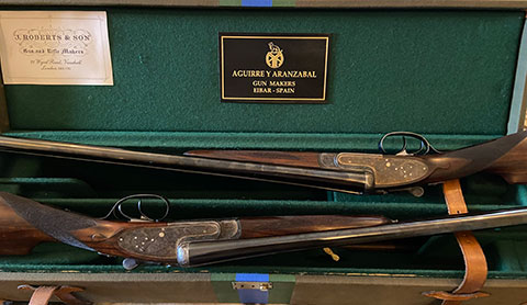 A barely used pair of AYA sidelocks, Model No1. Copies of the Holland & Holland 'Royal'. Originally retailled by J. Roberts & Son, London. Presented in their J.Roberts / AYA motorcase. These are best quality AYA guns with fully engraved sidelocks and chopper-lump barrels. A perfect pair of grouse or driven partridge guns or a 'rainy day' pair if you want to protect your Holland & Hollands.