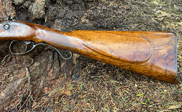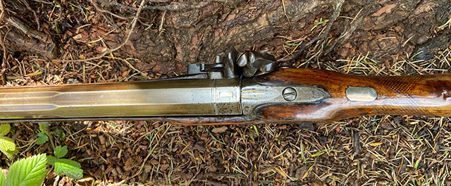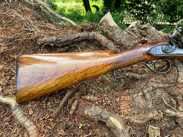 Circa 1810. A nice single flintlock 14-bore sporting gun. Likely Jonathan Bellis - Master Furbisher, Tower of London 1793-1829. Fine quality three stage barrel. Gold inlay to breech, platinum touch hole, singel cross bolt, engraved lock, roller frizzen, gold inlay to guard, original rod. No licence required.