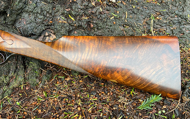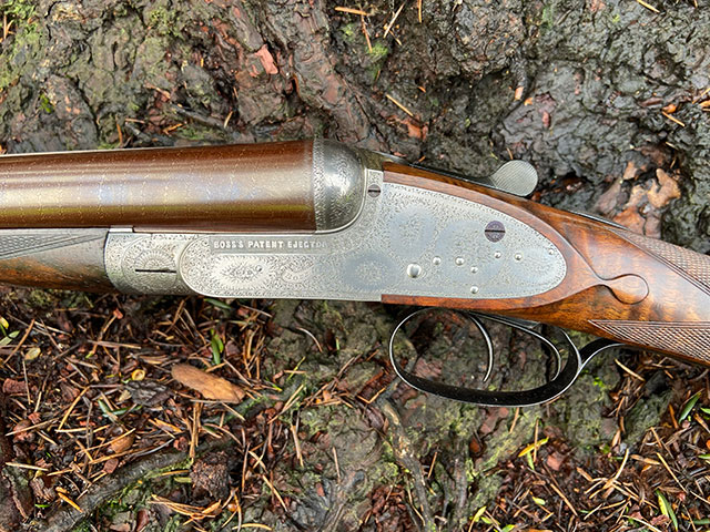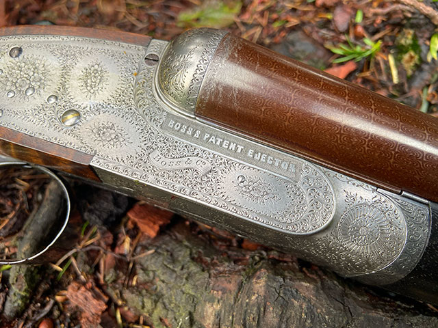 A rare chance to buy a Boss sidelock ejector with original Damascus barrels. This is the traditional square-body sidelock. The gun is in excellent restored order, having come from a private collection. Excellent woodwork, nice 30" barrels and two triggers to help with long-term reliability. A very usable best Boss game gun, dating from 1895. No.1 of a trio. A practical classic in every sense of the word.