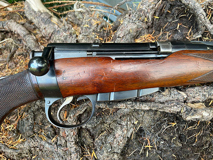 A fantastic, original and best quality example of the famous BSA Lee Speed .303, as used in 'The Ghost & The Darkness' by Val Kilmer, playing Col. Patterson. Horn grip cap and forend cap. Five-shot magazine, perfect bore, solid flat rib, standing ramp, plus five folding leaves and ladder sight. Highly figured walnut stock with pistol hand. Sling swivel loop on barrel. As good an example as there is to be found.