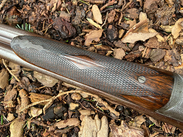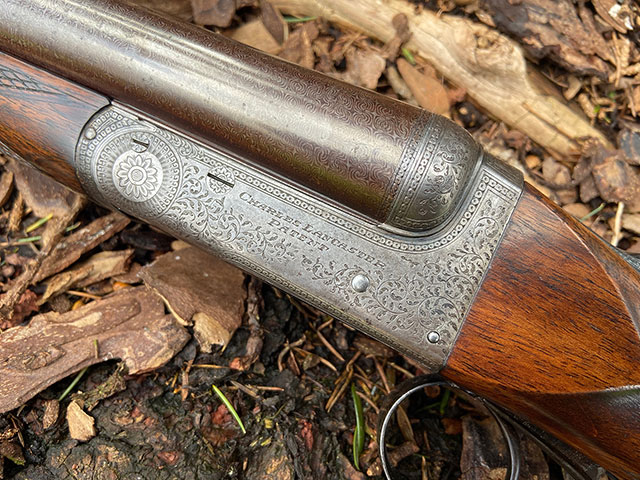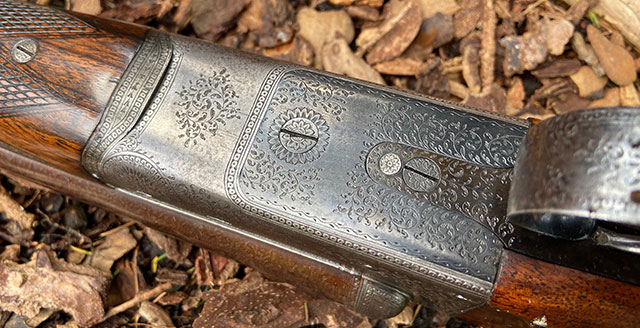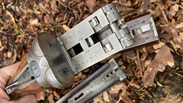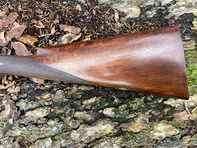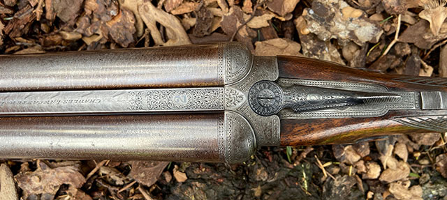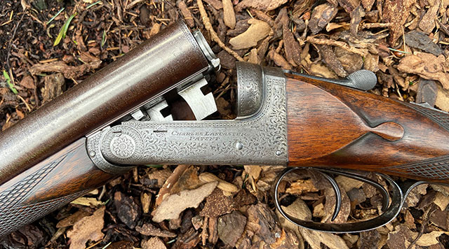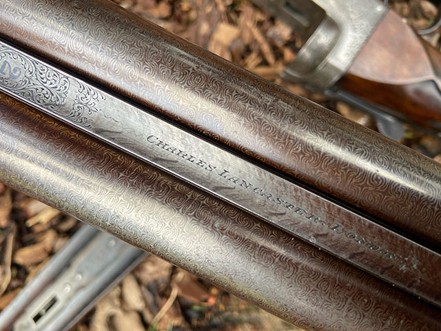 Beesley patent self-opening, spring-cocking body-action gun by Charles Lancaster with damascus barels, nitro proofed and in excellent mechanical condition. Finding a good example of this very clever and pleasant to use action is hard. This one is as good as we have seen. A lively handling 6lbs 5oz.