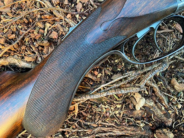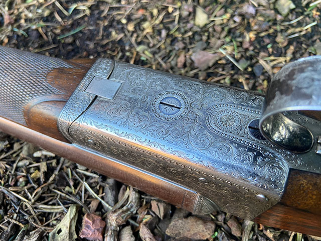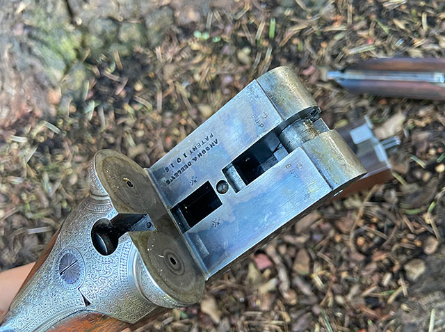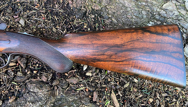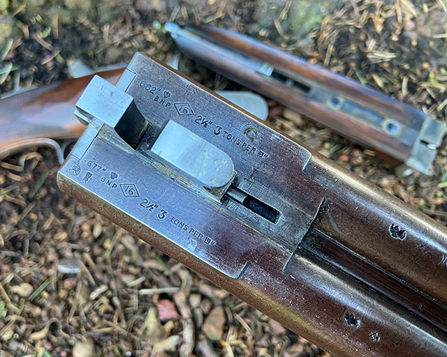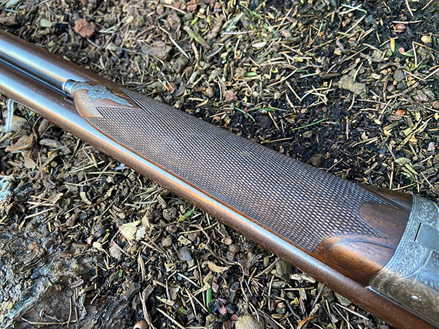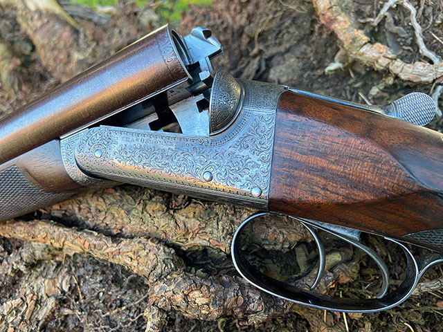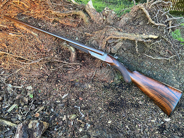 An unusually lovely boxlock non-ejector by Charles Osborne. Professionally restored and re-proofed with 2 1/2" chambers. Beautiful dark walnut stock, fine damascus barrels, Westley Richards type bolted top-lever.
