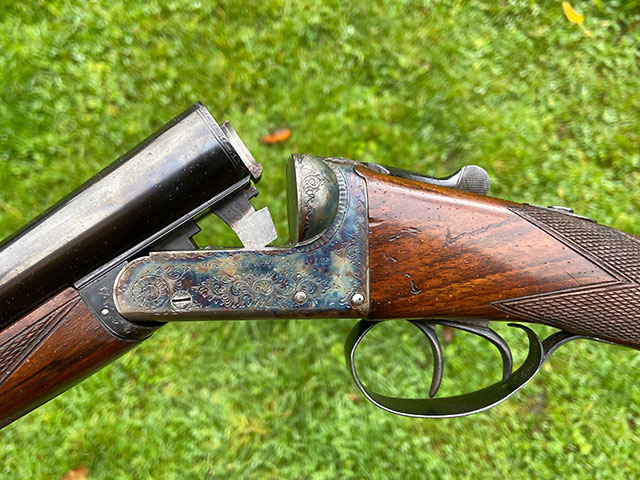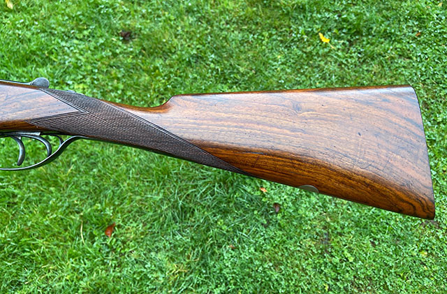 One owner from new in 1964. 'Markor' model by Cogswell & Harrison. almost 100% original case colours, nicely figured stock. Used for four or five driven days per year by the owner for the last 55 years. Excellent order throughout. A classic mid-weight game-gun with the benefit of 2 3/4" chambers.