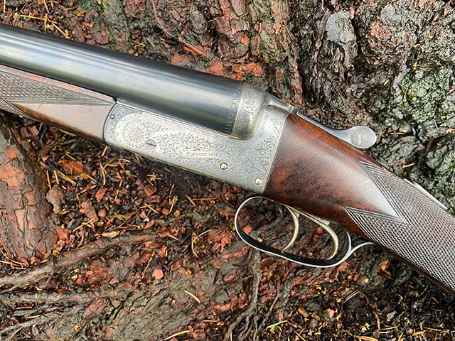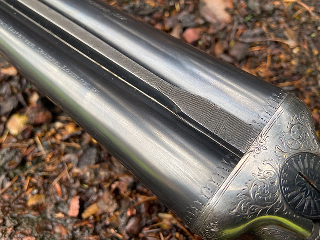 A very good E.J. Churchill 'Regal' model 12-bore boxlock ejector. Unusually, it has a Churchill rib on 28" barrels, rather than the more common 25" barrels. The gun is in excellent mechanical order and would respond well to a little cosmetic uplift to the wood finish. Useful 70mm (2 3/4") nitro proof and open chokes make it a good candidate for shooting standard steel loads.
