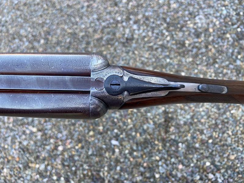 A sound 12-bore Birmingham boxlock with nice Damascus barrels. No name on action or rib but flats stamped 'W. FORD', denoting William Ford as the maker. Ford was Greener's best barrel maker before setting up in business for himself. The gun has been well restored and is in very good cosmetic and mechanical order.