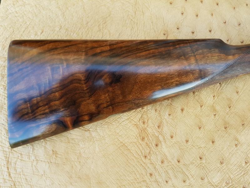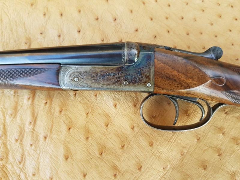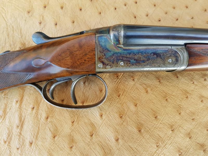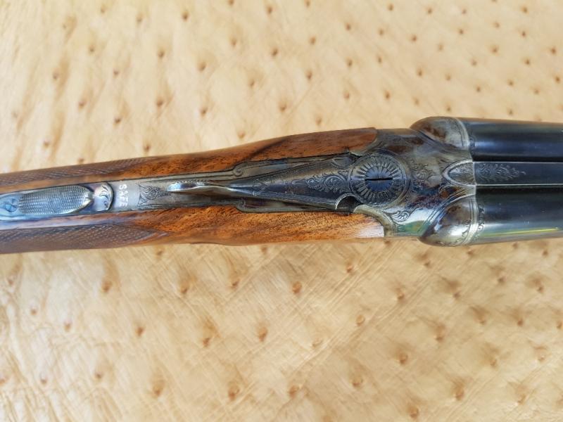 An immaculate and high quality .410 boxlock non-ejector by George Bate, with 27" barrels and a lovely figured 14 3/4" stock. A Birmingham made gun with drop points and side panels, top-lever action, retaining a great deal of original case colour. Beautifully finished and in showroom condition.