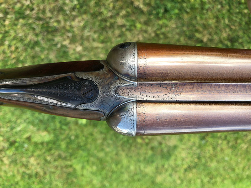 A really nice example of Greener's Facile Princeps action with the Treble Wedge Fast crossbolt. Nitro-reproofed Damascus barels with clean bores and great measurements. Unusually well-coloured and figured wood and about 35% original case colours. The qualith and mechanical excellence of a Greener Facile Princeps without the tricky ejector work. Top safety instead of the normal Greener side-safety. Greener charged an extra £1 for this!