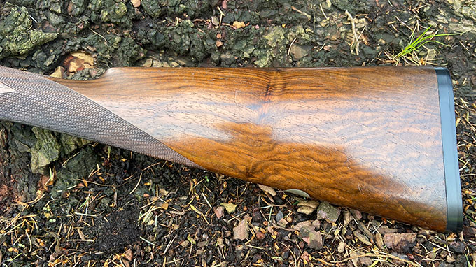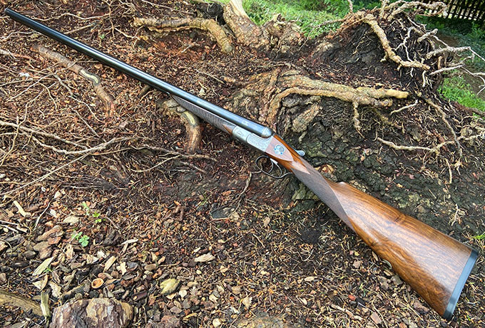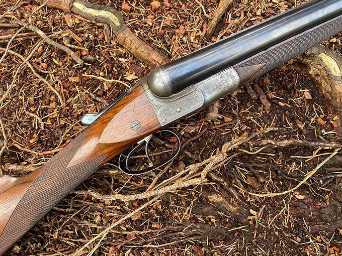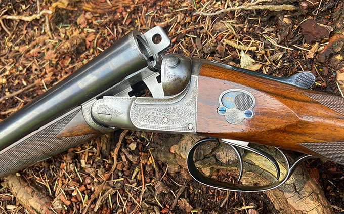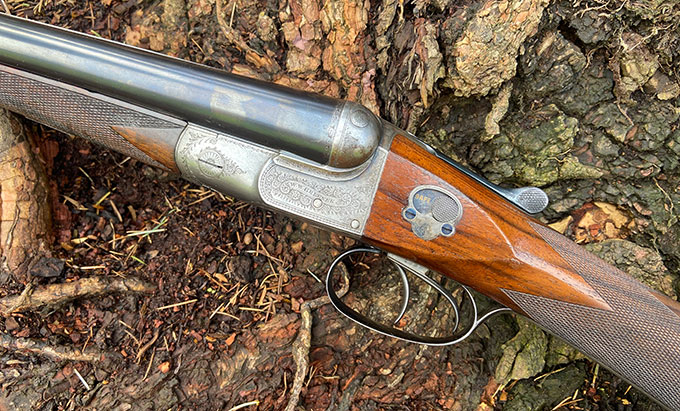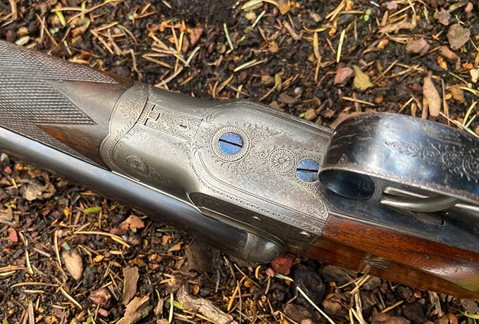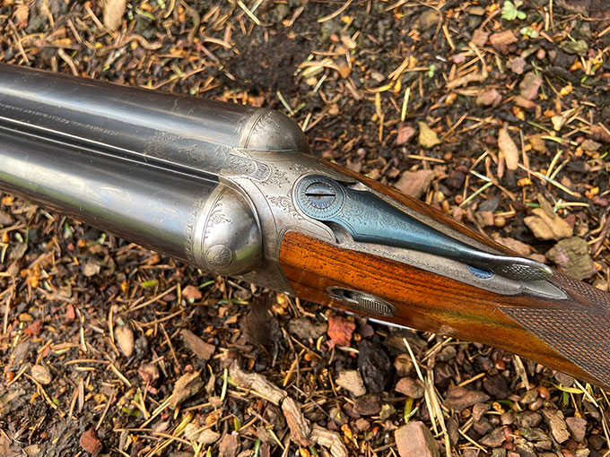 Classic Greener FH50 Facile Princeps action with Baker patent forend ejectors (much more reliable than Greener's in-house ejector work). Classic side-safety, scroll engraving and Greener cross-bolt acting as a third bite. Nice, long stock with 1/2" horn butt plate. Slightly cast-on for the left hander. A very nice, mechanically excellent, example of Greener's most reliable and developed version of the Facile Princeps. Made in 1898.