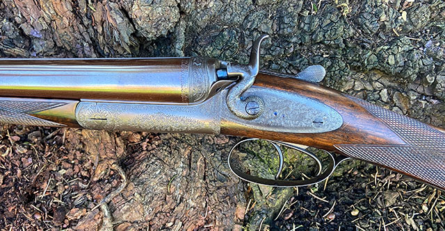 Hammond Bros hammer guns are very distinctive and the lock shape unique to the company, as is their engraving pattern and wording on the bar. This is the best example I have seen to date. Found in remarkably good original condition and professionally and sympathetically restored, it is mechanically perfect. Recent nitro re-proof for 65mm Standard (850 BAR).