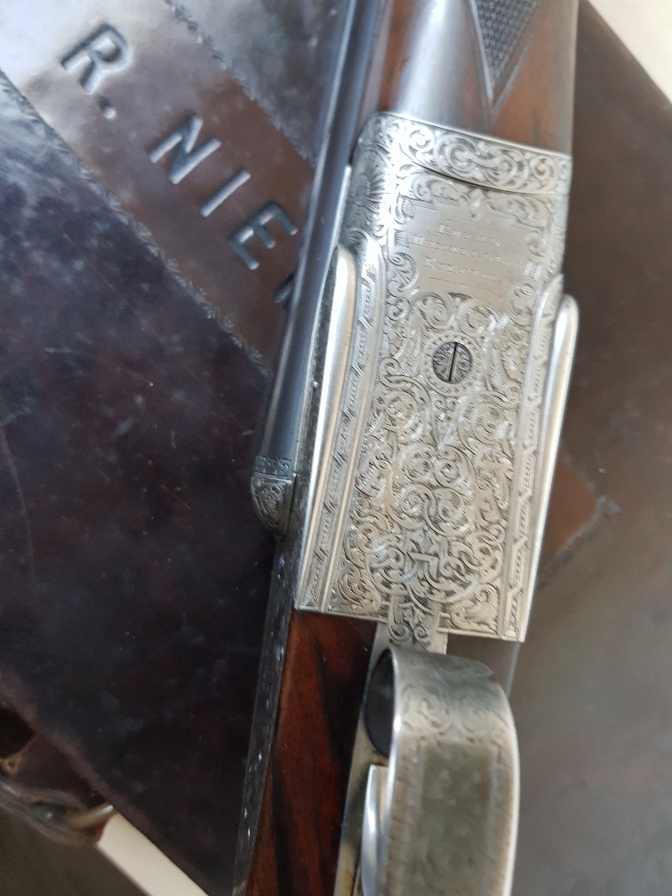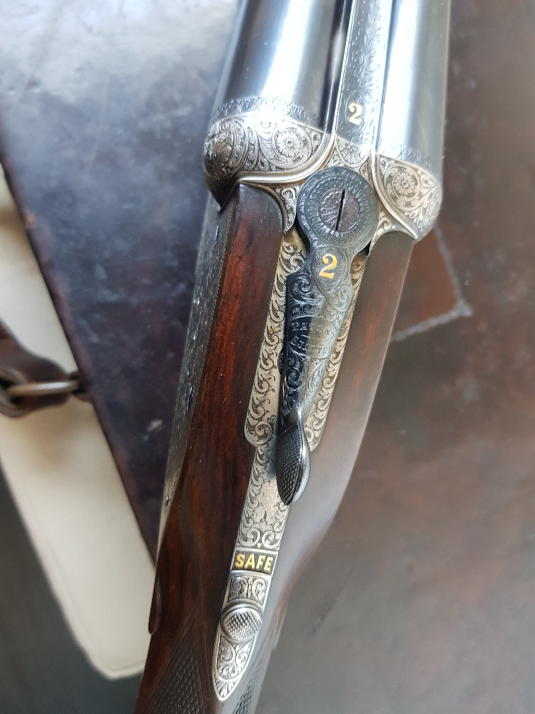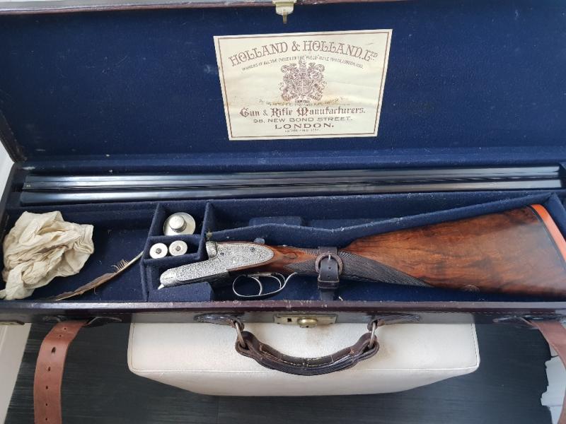 A Holland & Holland 'Royal 12-bore sidelock ejector bearing the crest of Stewart of Glen Appin, Castle Stalker, Argyl, Scotland. Made in 1905, this is a second model 'Royal' without the self-opening system later added. Cased in it's maker's leather case with trade label and accesories.