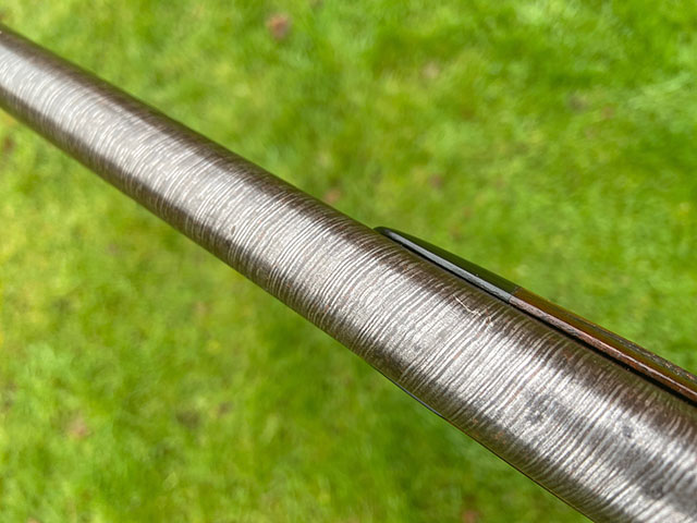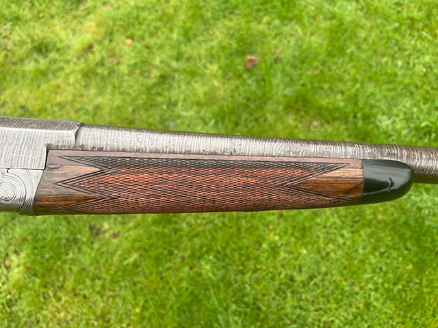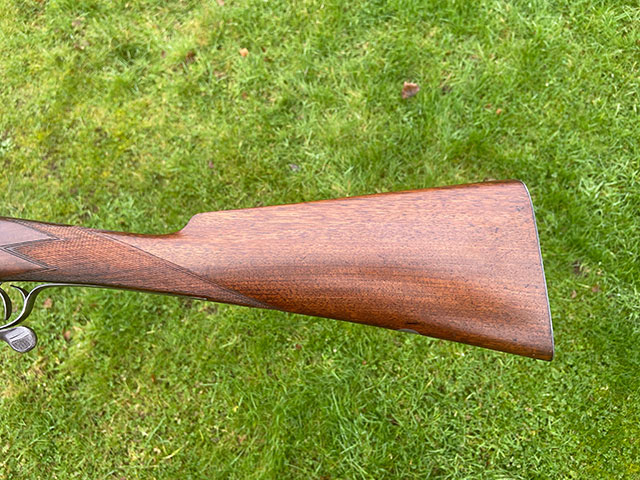 A 16-bore single hammer gun by Hughes. 30" Damascus twist barrel, nitro proof, cast off 1/8", very good condition. A lovely gu for walking-up over the dog.