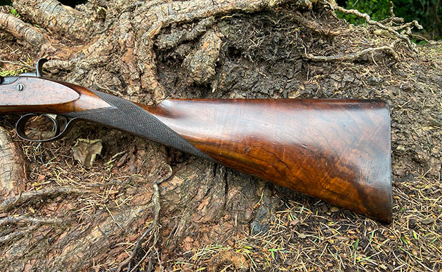 Snider breech-loader, approx 11mm sporting rifle by J. Wells, 6, Bishopsgate St Without. London. Section 58, 3 position leaf sights, horn tipped forend, good bore ad rifling. Mechanically sound and looking very original. Circa 1870. Best quality.