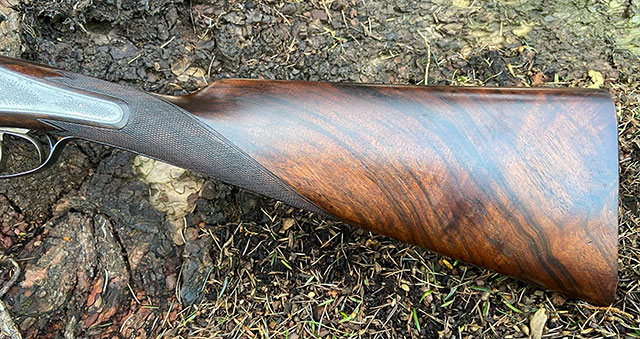 James Purdey 2nd pattern thumbhole lever back action hammer game gun. New Whitworth steel barrels were fitted by the maker in the 1890s. Nitro proof, rebounding locks, good working order throughout.