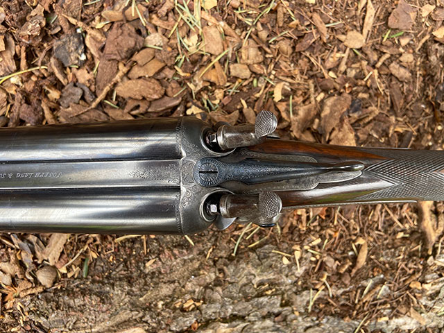 Restored and re-proved Joseph Lang back-action hammer gun with rebounding locks. Recently restored and sleeved, with new barels proof tested for 70mm (2 3/4") nitro, making it suitable for use with 70mm cased 'standard steel' shot cartridges.