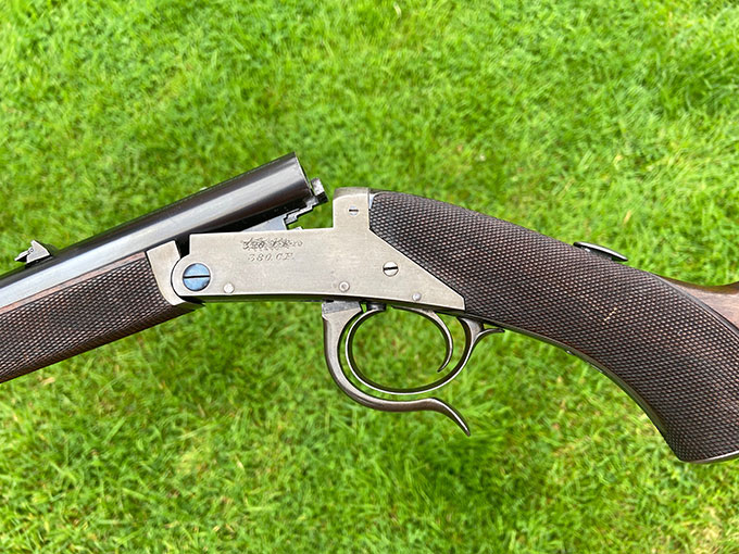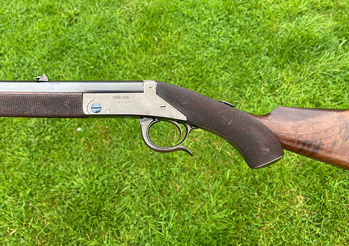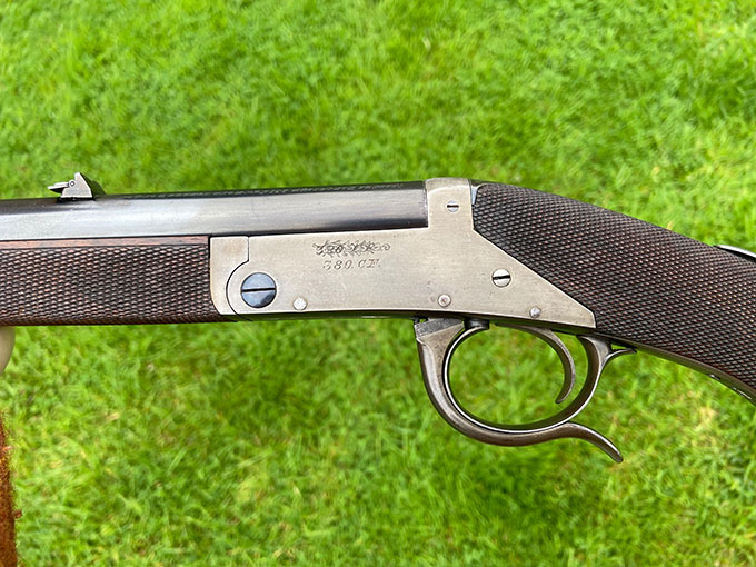 A very rare .380 Lancaster oval bore rook rifle. Very nice condition, tight and shootable. Possibly unique example. Featured in 'British Single Shot Rifles' by Winfer.