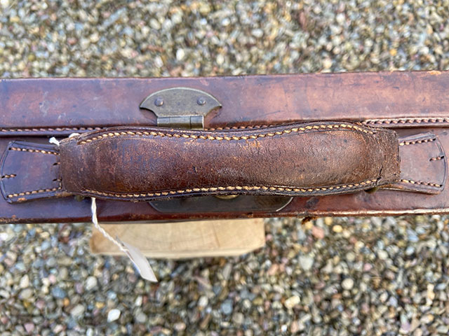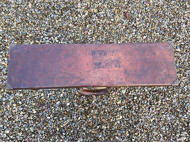 A leather single gun case for re-lining. Leather in sound condition, lock working, brass corners. Length 32", width 8 1/2" blocked for 12-bore with 30" barrels. A good start for a hobbyist with the time and inclination to partly re-block and re-lie a case for a victorian shotgun.