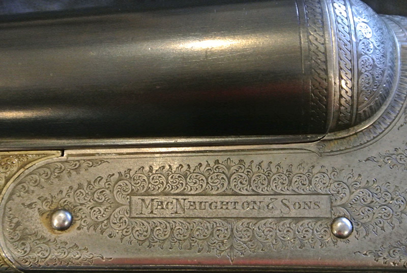 A 12-bore game gun by James MacNaughton & Sons, the Edinburgh gun maker. Nitro proof for 2 3/4" cartridges, this is a perfect upland gun for hunters who want easy ammunition choices.