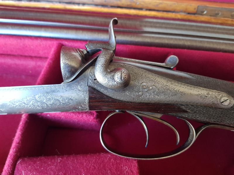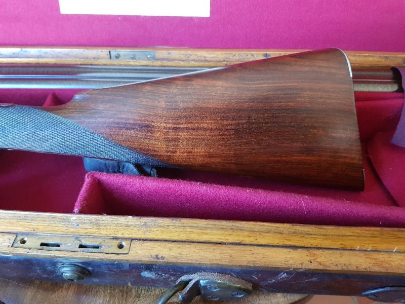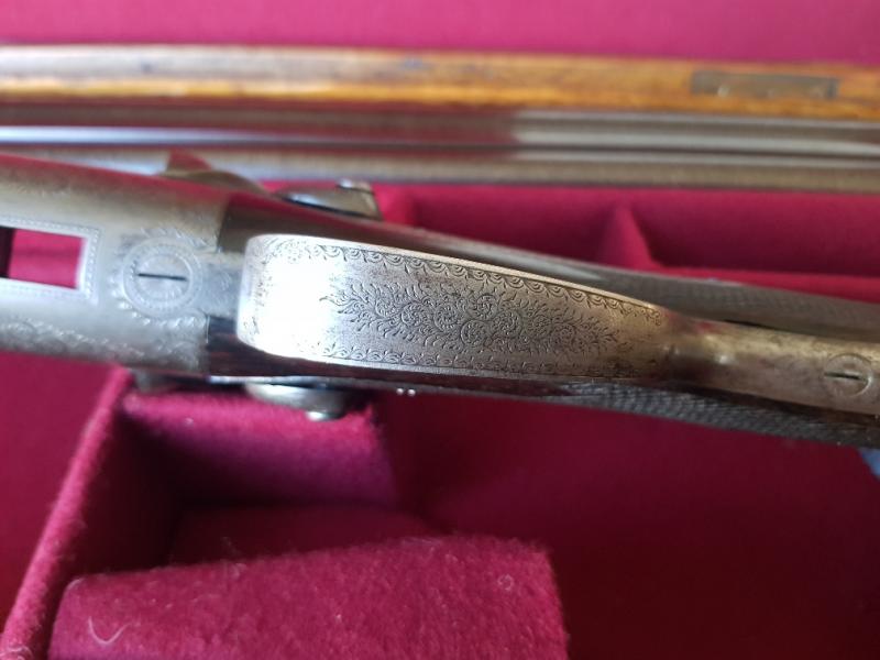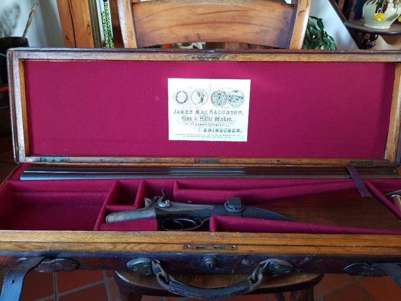 A rare 12-bore hammer gun made in the first year of MacNaughton's business. Cased in oak and leather with trade label, the gun has heel and toe plates and was nitro re-proof tested in 1994. The barrels still measure as proofed.