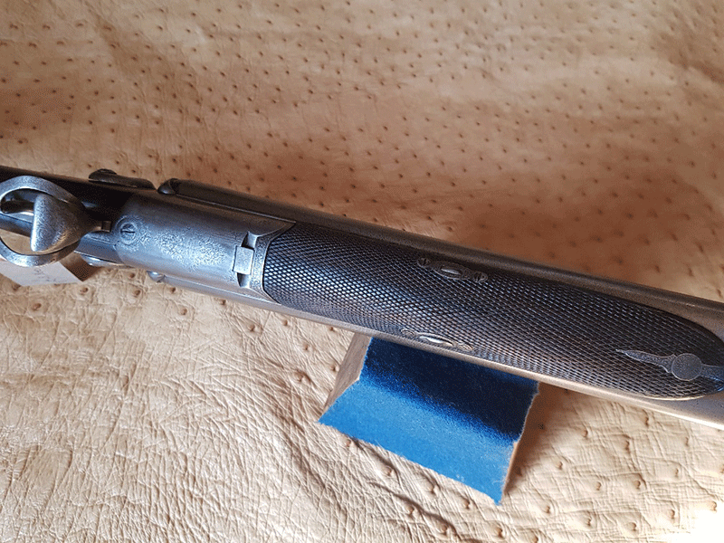 A good Purdey hammer gun, re-prrofed in London in 1979, for nitro. Second-pattern Purdey thumb-hole action, rebound island locks, damascus barrels, Sound condition and pretty wood.