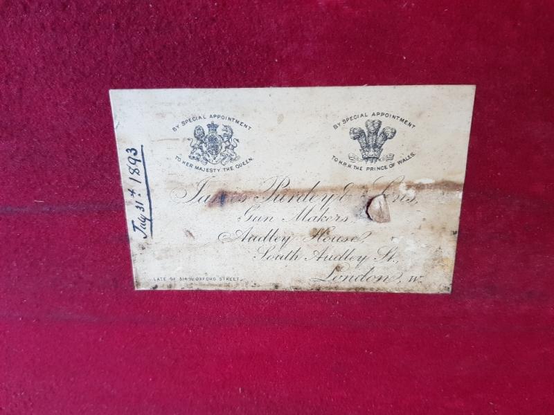 A Purdey shotgun case circa 1885 for 30" barrels. Can be expertly re-fitted to customer's requirements (at extra cost). A good, vintage case well worth re-fitting for a period sidelock or hammer gun.
