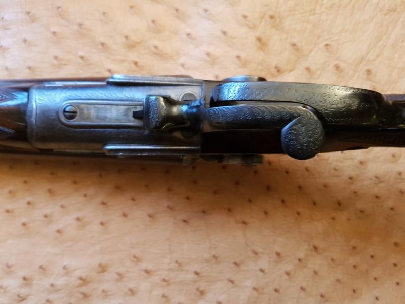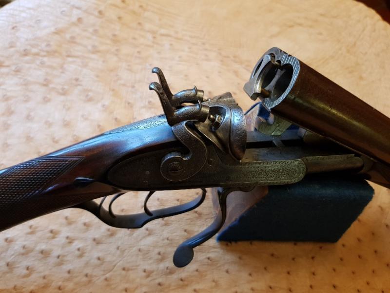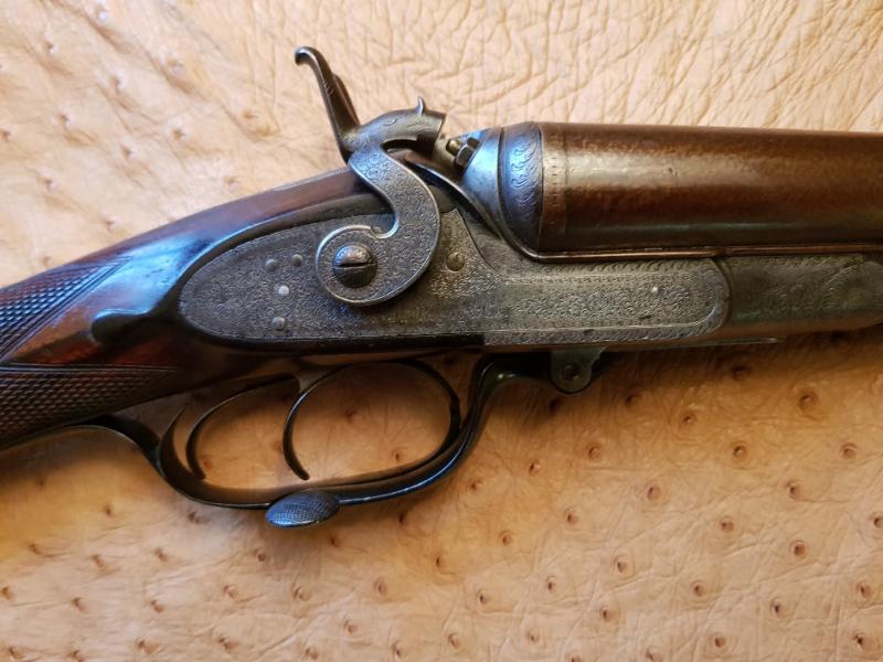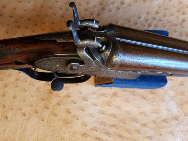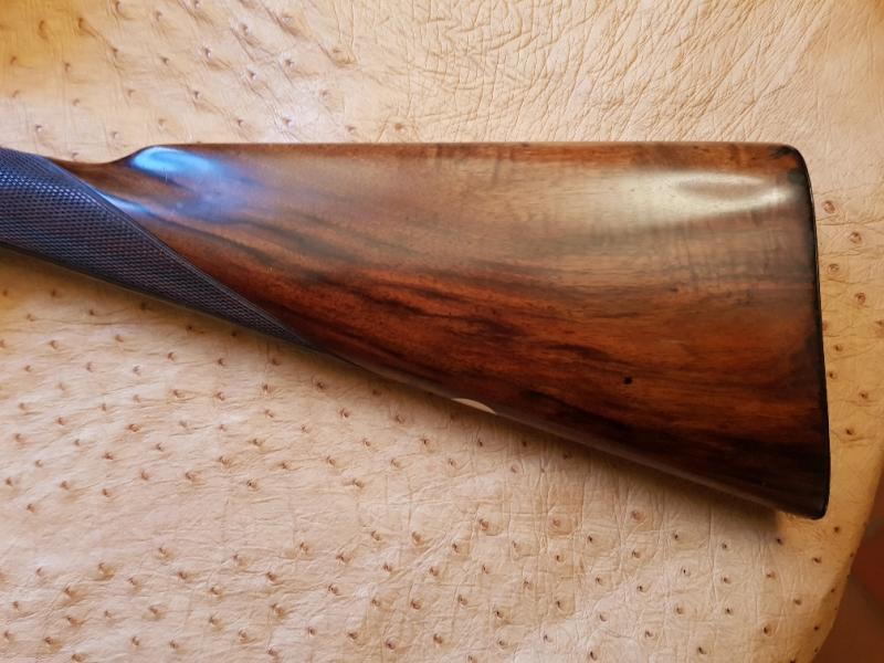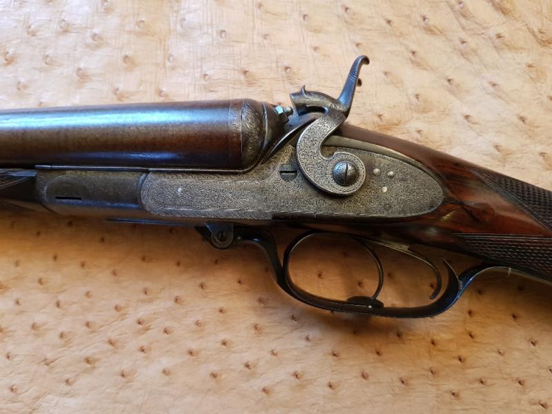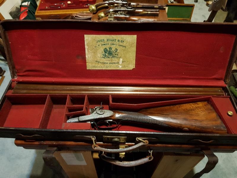 A very nice bar-action hammer gun by John Rigby, flat sided, engraved hammers, push forward under-lever, snap action. 30" damascus barrels, with 2 1/2" nitro- re-proofed chambers. Nicely restored in the past and in very good condition. Cased with provenance and history about the original owner.