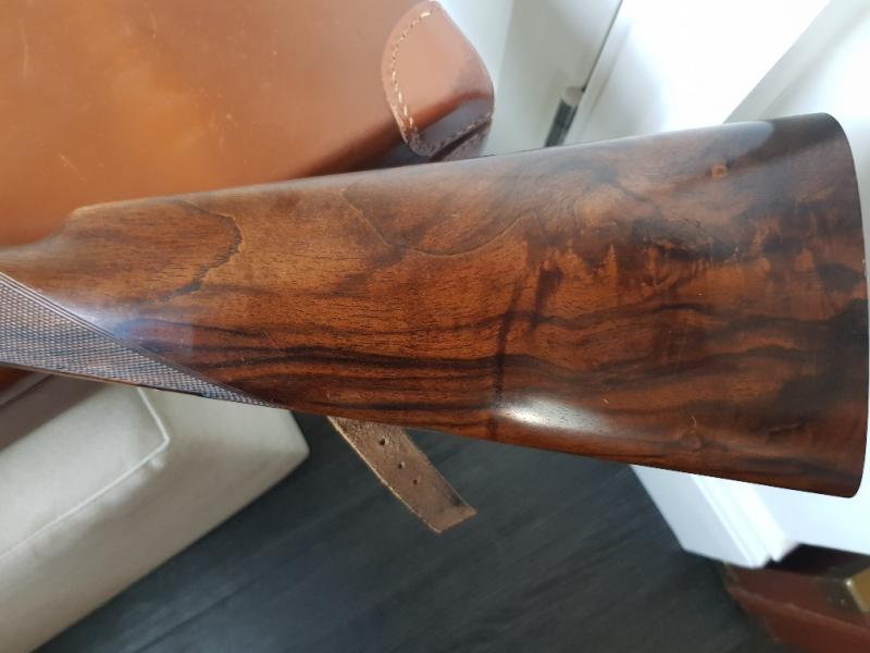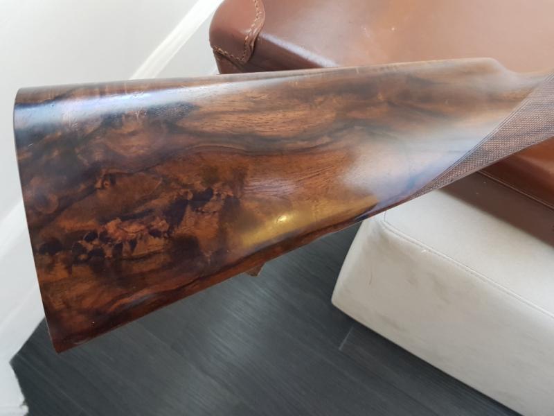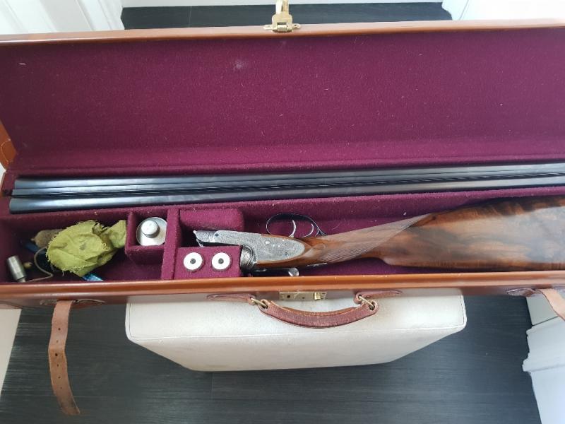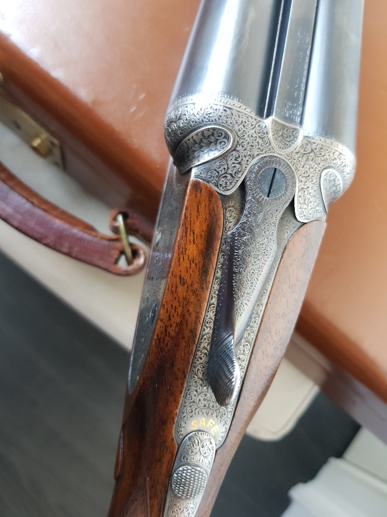 A nice, cased, Stephen Grant top-lever sidelock ejector 12-bore. Choked for grouse with the tighter choke in the right barrel. Excellent mechanical and cosetic condition and the bonus of 2 3/4" chambers.