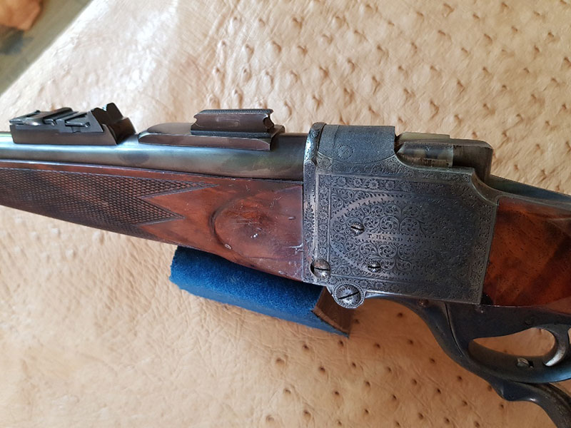 A .360 BPE Farquharson falling-block rifle, which must be the finest rifle Bland ever made. It is in remarkable condition, retaining almost all its original case colour and has superb wood. It was the property of King Alphonso XIII of Spain.