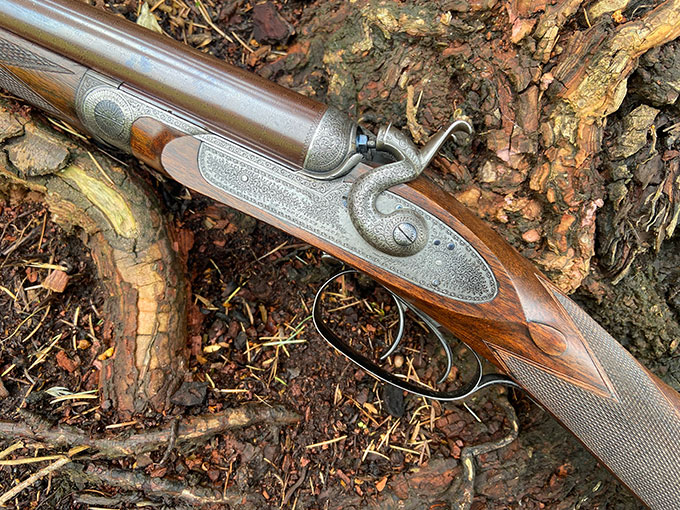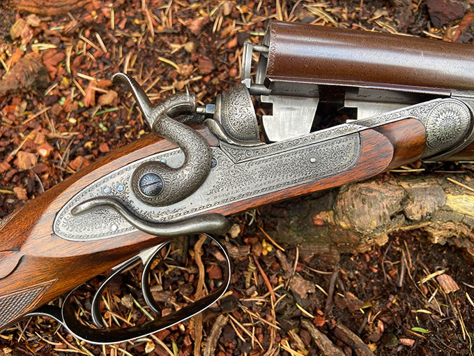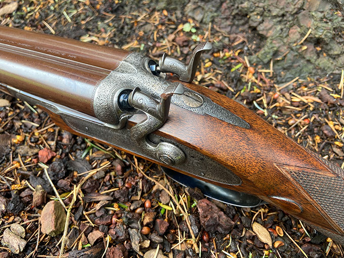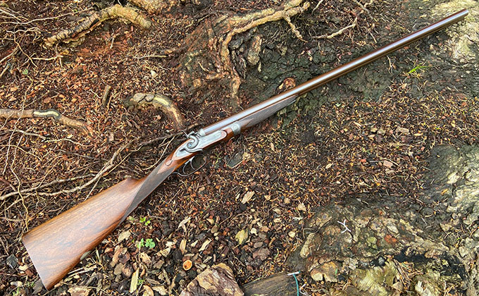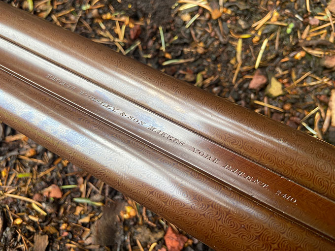 Thomas Horsley side-lever, 16-bore, hammer gun, with rebounding bar locks and Purdey bolt. Re-proofed in 1984 for nitro. Best quality, with 29" damascus barrels, which are blemish free. The gun was professionally restored a decade ago and restocked by ex-Purdey stocker David Becker to its current dimensions. Slightly cast-on for the left hander. Altogether, a rare find. Made in 1880.