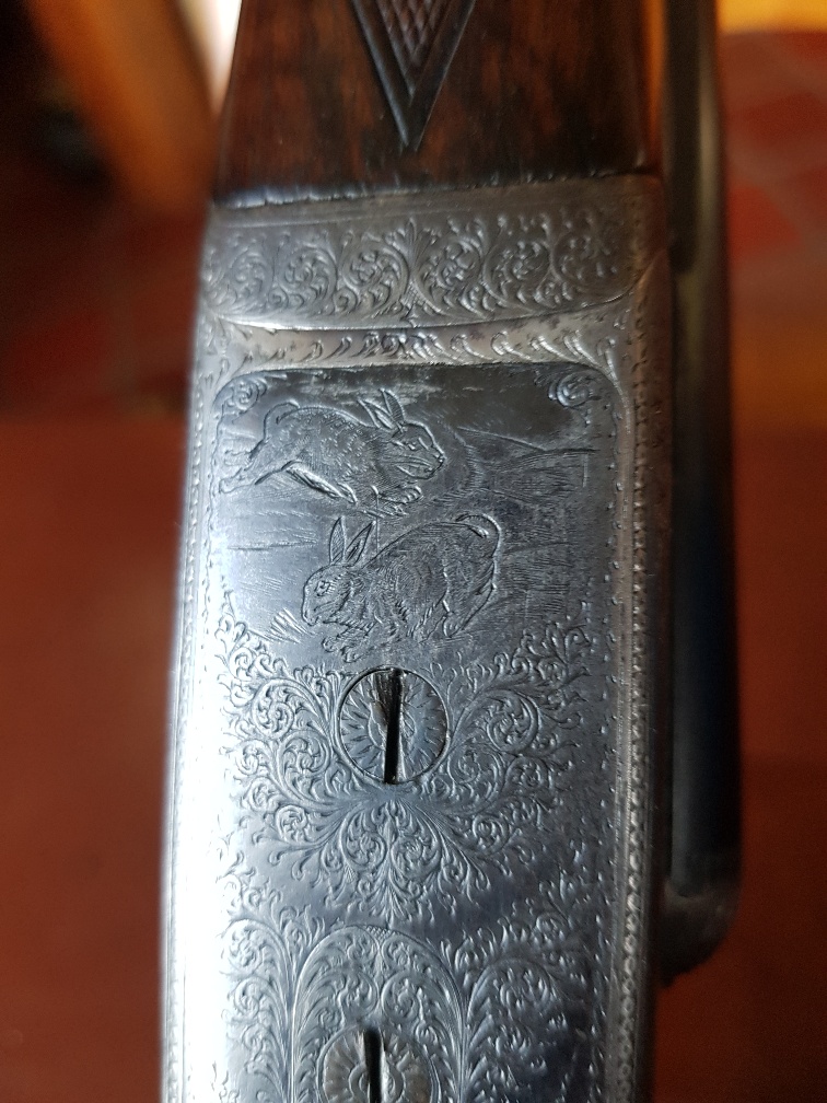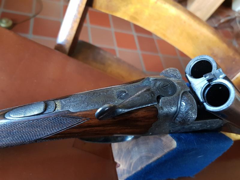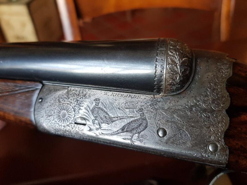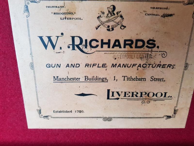 W. Richards (Liverpool) 20-bore boxlock ejector, in maker's case with oil bottle. Game scene engraved, with 27" barrels and 2 1/2" chambers, highly figured stock and excellent mechanical order.