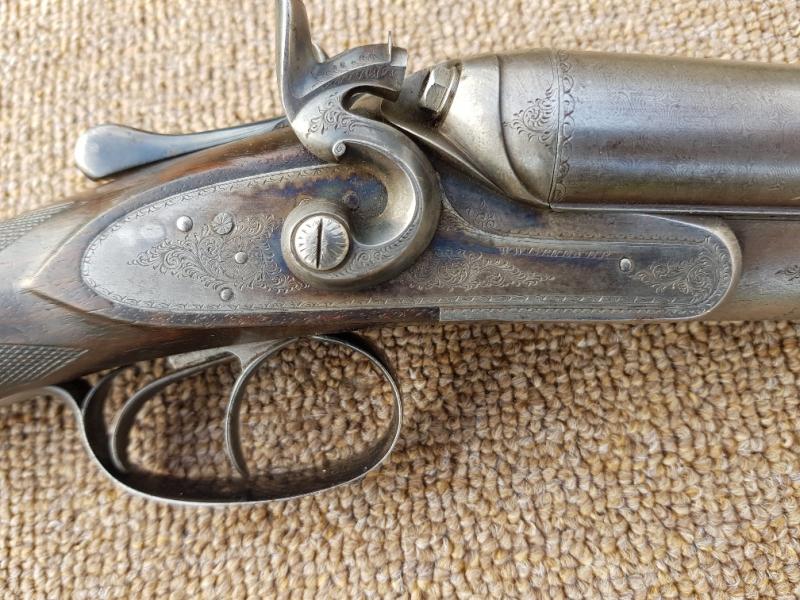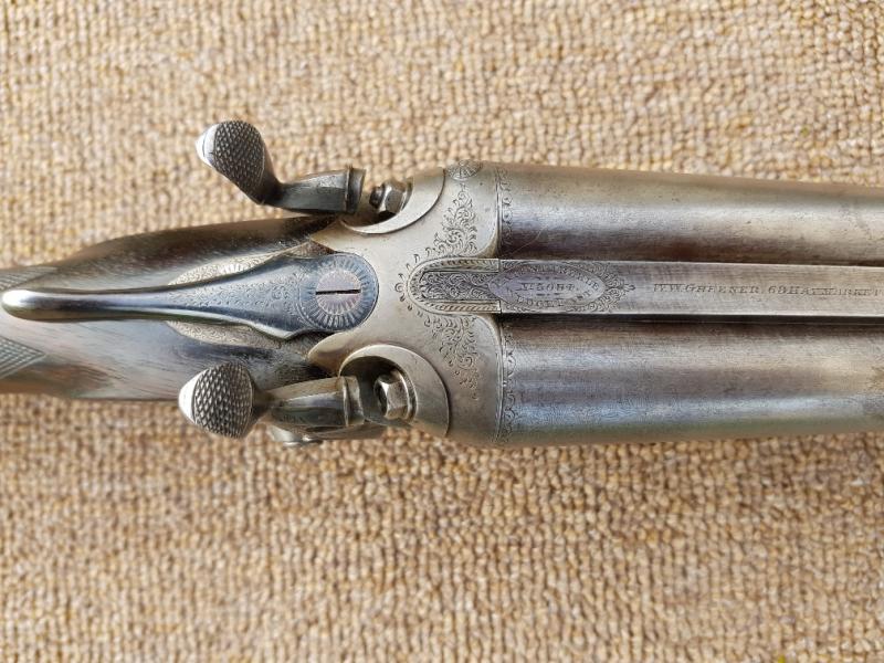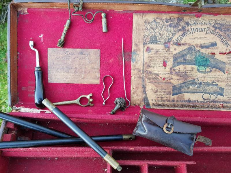 A cased 12-bore WW. Greener hammer gun with 2 1/2" chambers, 30" barrels re-proofed in 2019. Treble Wedge Fast action, addressed 'Haymarket, London'. With a number of period accessories.