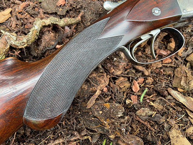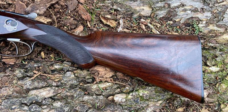 Greener Facile Princeps 12-bore non-ejector live pigeon trap gun with 3" chambers and American style trap stock. Very original and unadulterated. Non-auto Greener side-safety, perfect barrels, treble-wedge-fast action. A superb, honest example of a classic Greener pigeon gun.