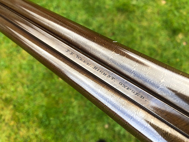 A nice quality back lock 28-bore hammer gun by F.E. Webb of Oxford. Rebounding back-locks with scroll engraving, 26" fine damascus barrels re-proofed for nitro. The gun has been stripped, cleaned, jointed and serviced, it is in excellent mechanical order and the barrels have been polished and best browned. Wood is well figured, in good condition and has never been re-finished, nor the chequer re-cut. Oil finish is worn, with sone age-appropriate scratches and dents but we can restore the woodwork if required.