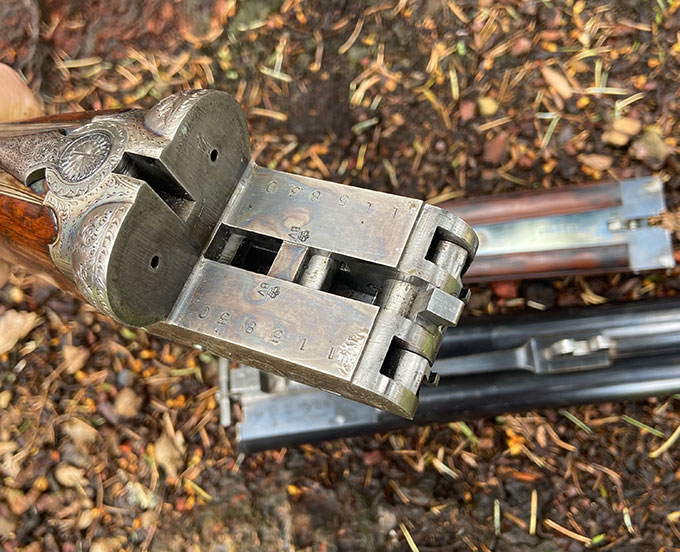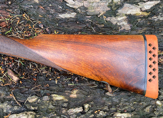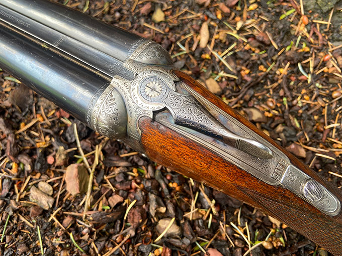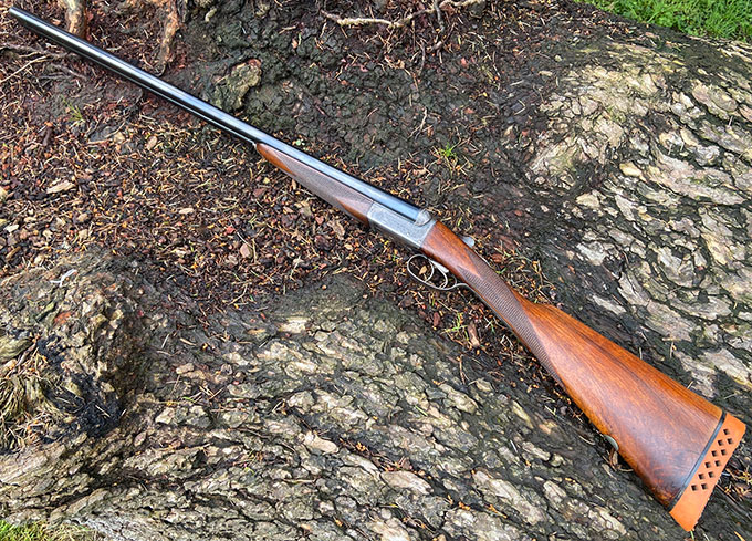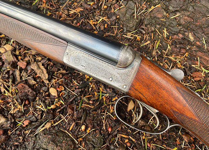 A nice example of a Webley & Scott Model 700 in 16-bore, which is quite unusual. Retaining about 40% of its original metal finish, the stock has a later, modern, rubber recoil pad, which could be replaced with a more traditional leather-covered pad. This is a mechanically excellent example of W&S's most successful model, in a hard to find gauge. Made circa 1938.