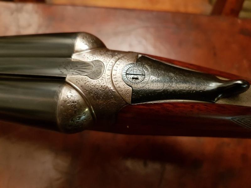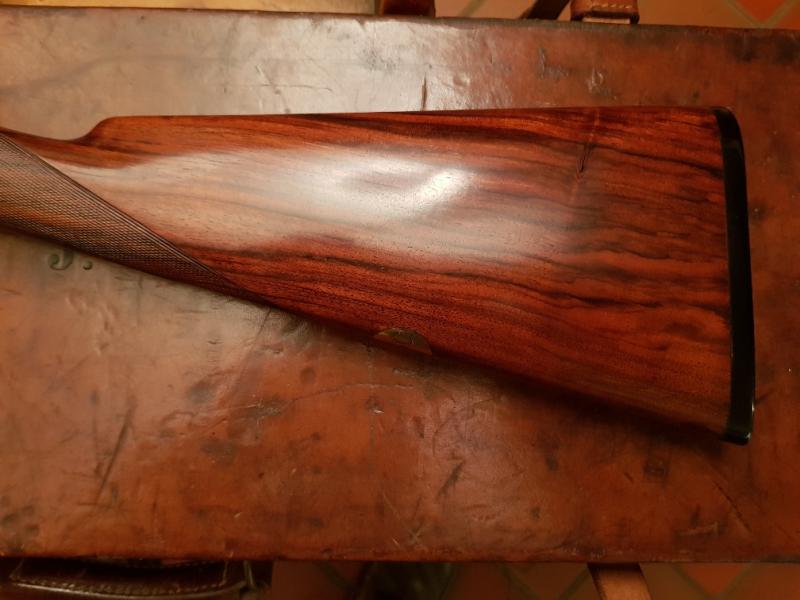 Westley Richards 12-bore 'drop-lock' made in 1910 and re-barrelled and re-stocked by the maker. Excellent mechanically with a large gold oval in the stock. This is a vintage action restored to create a modern game gun.
