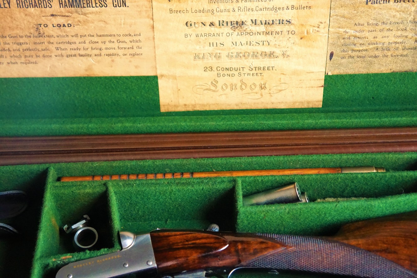 A very nice example in 28-bore, with maker's name in gold on the action. Damascus barrels re-proof tested for nitro. Very pretty wood and in great overall condition. In its maker's case.