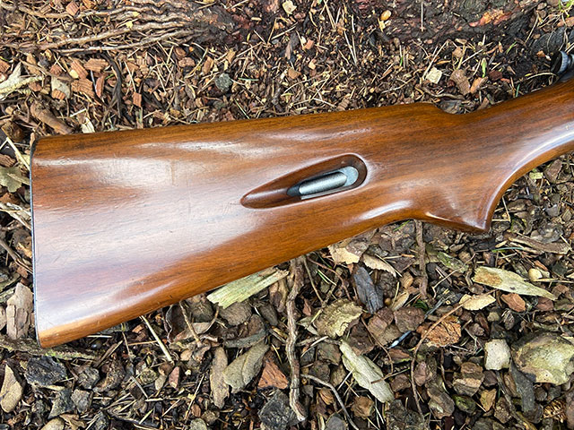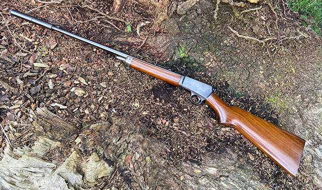 An early 1960s Winchester Model 63 .22 rimfire semi-auto sporting rifle in remarkably good condition. Fitted with a PH sound moderator. Very hard to find good examples of these now. They currently sell in the US for around $1,000. A high quality classic semi-auto.
