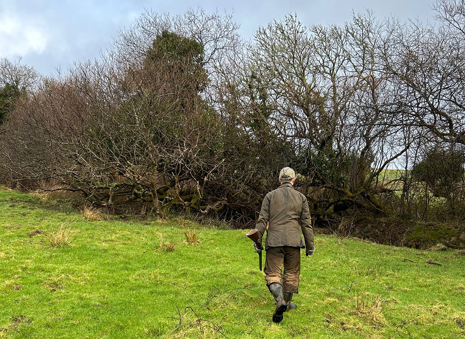 Our first point of the day came in a patch of holly alongside the steam. My host was generous enough to focus on controlling Luna and offering me the best opportunity to take my first Irish woodcock. She stood transfixed at the base of the tree, tail quivering with excitement as Nick encouraged me to approach slowly behind her. Suddenly something small, brown and feathered flushed from the cover, I shouldered my Bettinsoli and Nick screamed ‘don’t shoot, it’s a hen pheasant’.