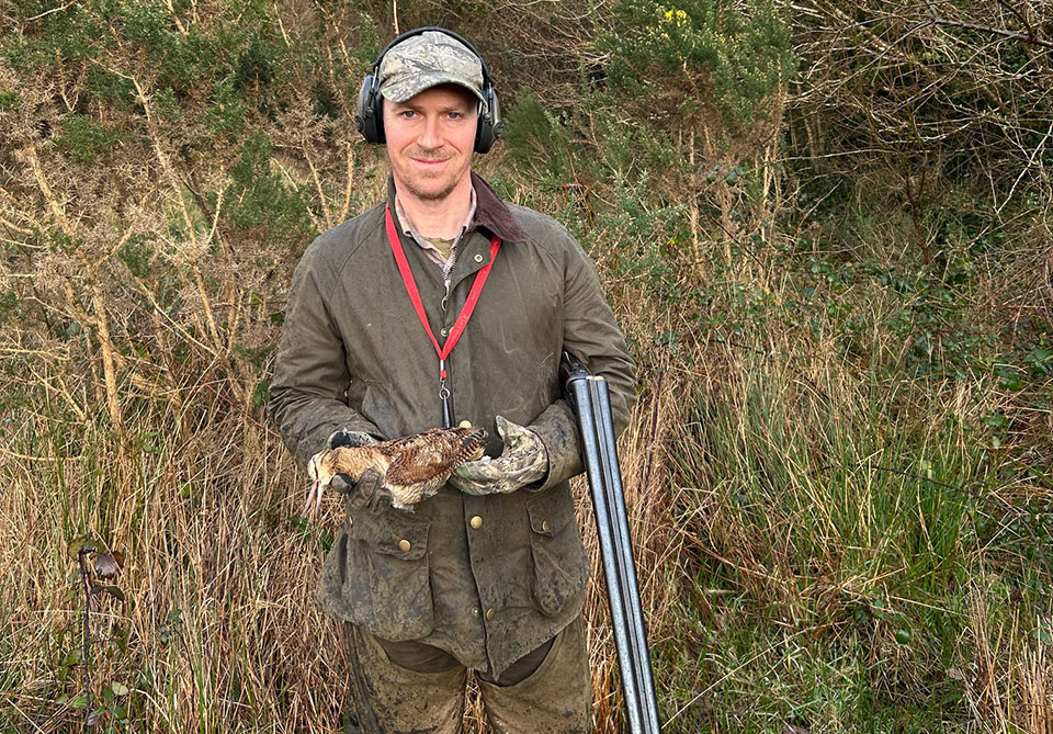 Nick shepherded me into what he thought was the most likely escape route for a flushed woodcock and then adopted his own position on the opposite side of the covert. With a sudden flash the woodcock burst from the cover heading left away from me. Over the crest of the hill we could see all the way down to the Atlantic ocean and the image of woodcock in flight over gorse against that backdrop was picture perfect. Snapping back to reality I shouldered my shotgun, swung through and past the bird, tightened my right index finger and watched it tumble definitively into the gorse. I let out an expletive laden whoop of joy and dashed forward to where the beautiful bird lay between the gorse.