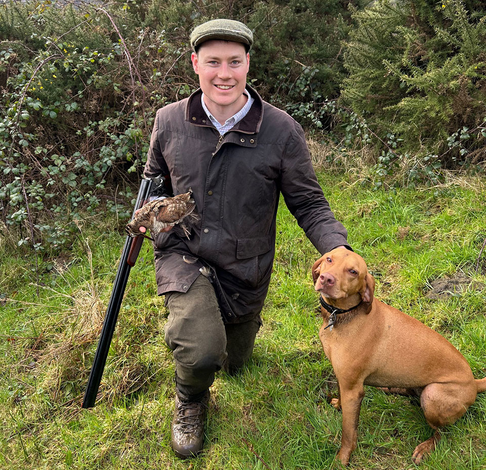 The next morning after suitably fuelling ourselves with a full Irish and donning sufficient waterproofs to protect ourselves from the persistent drizzle we headed out to with farm with Luna the Viszla. Our grounds consisted of about 40 acres covering both sides of a valley bisected by a small stream. One side was a mix of green fields and forestry, the other rougher moorland and bog. Our pockets were filled with a mixture of No. 9 cartridges for the woodcock and snipe and No. 5 cartridges for any encounters with the wild black-neck pheasant.