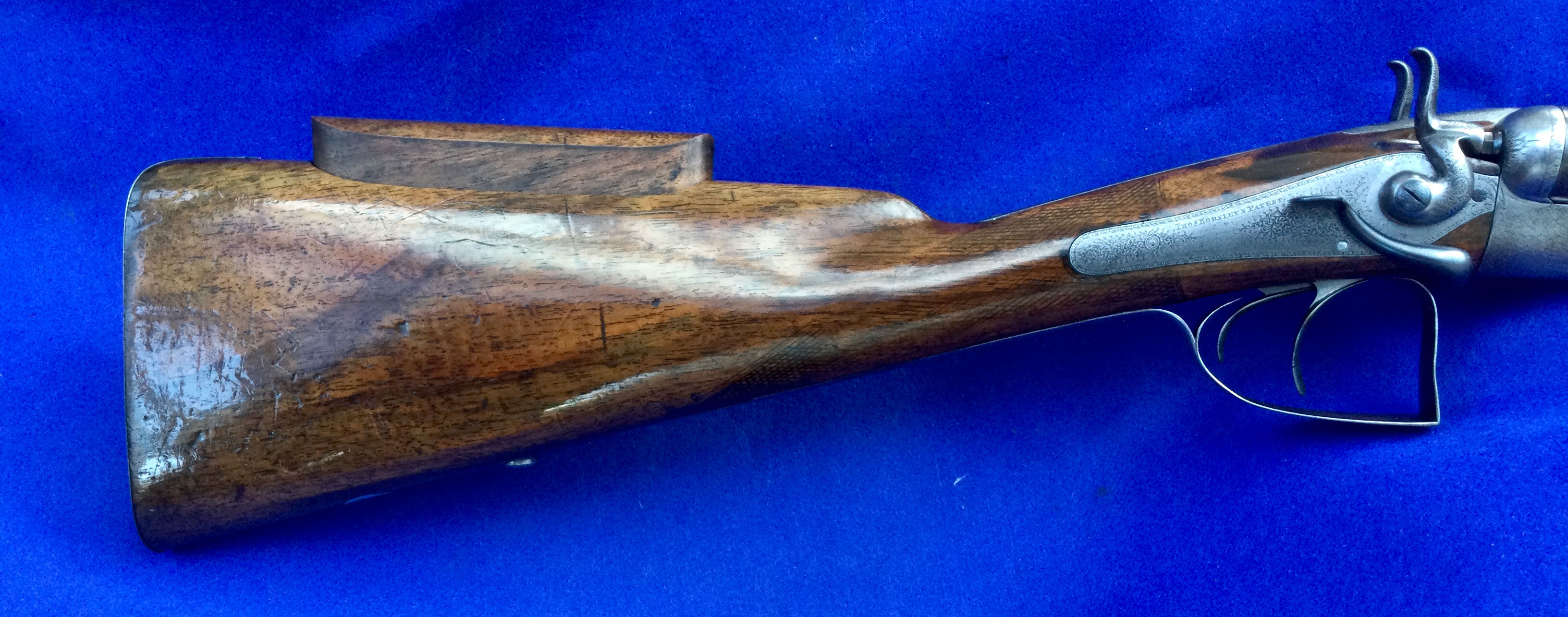 The gun recently recovered gun was listed in the Thomas Horsley records as one of six guns ordered, and built by Horsley for Lord Stourton. The interesting part of this story being, the whereabouts of the second gun, its whereabouts not been known for over a hundred and forty five years. There was no mention in the records of an adjustable comb, this important fact was very close to being lost from history, as the gun was destined for the scrap pile. The stock configuration on the first gun thought to be unique had just found a long lost identical twin.