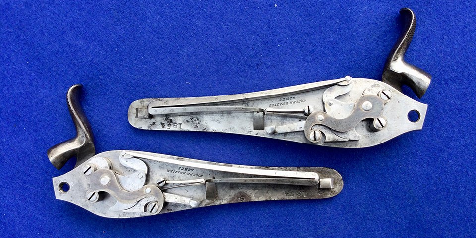 The images give an idea of initial findings. The locks cleaned, allow us to see the locks were best quality Non-Rebounding Locks by Joseph Brazier “Ashes” - The locks after 150 years show little signs of wear, and work perfectly, giving positive half cock and full cock, with superb trigger pulls.
