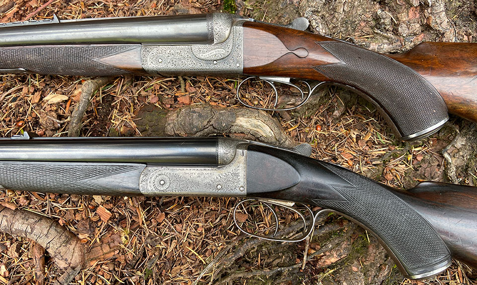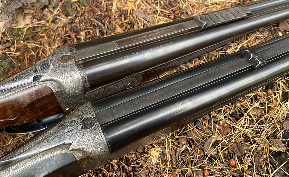 These rifles are of a type we no longer see very often in Britain. double rifles with open sights for deer stalking area thing of the past, now everybody seems to prefer a magazine rifle with a telescopic sight. The double rifle is now mostly the preserve of the big game cartridge, though there is some residual affection in parts of Europe for medium-weight doubles as woodland stalking or driven boar rifles.