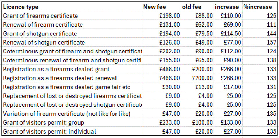 The Government increased all fees associated with firearm and shotgun ownership massively in 2025, ostensibly to inject money into a failing system and charge gun owners the actual administrative cost of each licence.