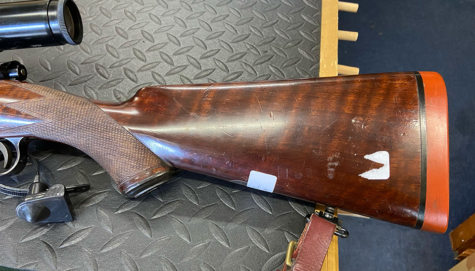 The modified stock was then chequered with Rigby pattern panels and hand oil-finished, and the barrel and action best blacked.